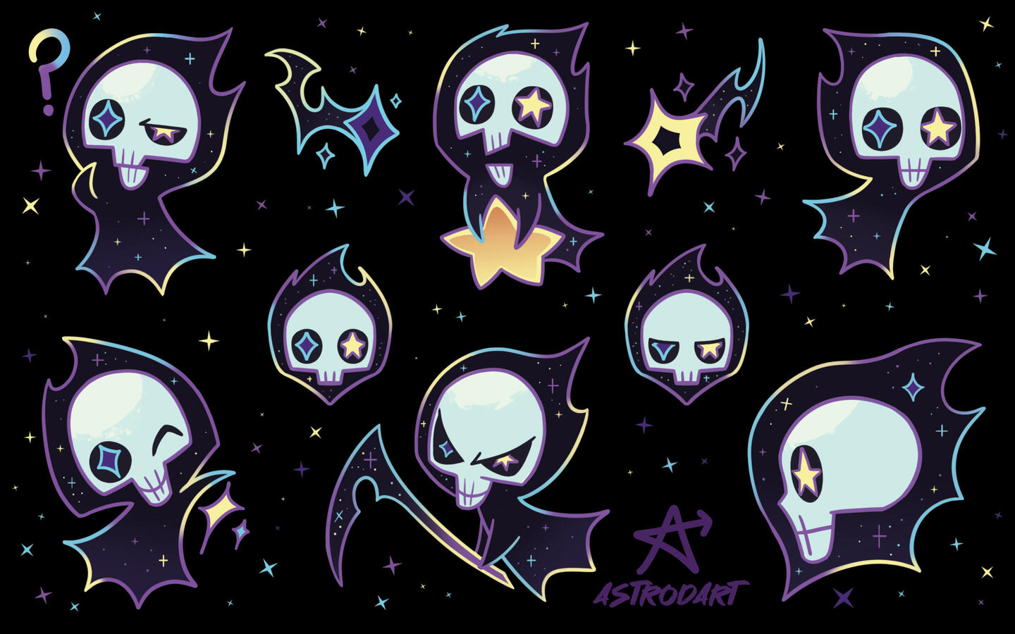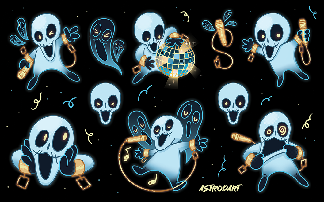 In my personal time, I LOOOOVE to create characters, ESPECIALLY skeletons! Playing around with edgy themes to make them...less edgy is my speciality, skeletons are cute!
