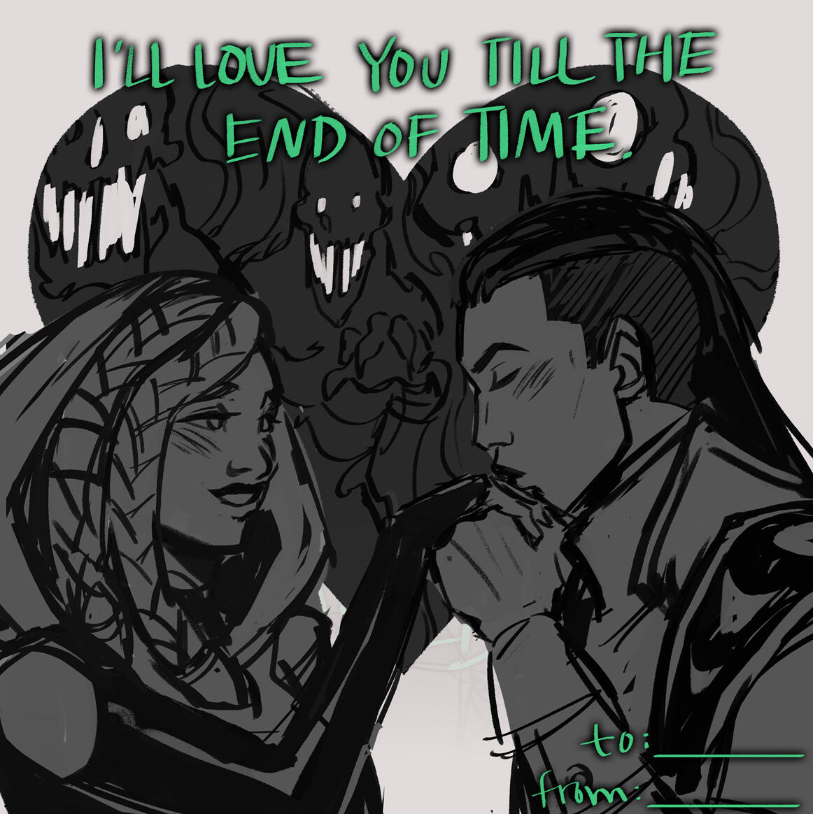 This was done in collaboration with Riot Games.I was tasked with making a Valentines Day card for their characters, Senna and Lucian (my favorite pair!!!).This was posted to the official League of Legends Twitter, Facebook, and Instagram accounts.