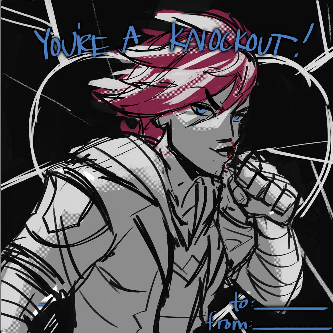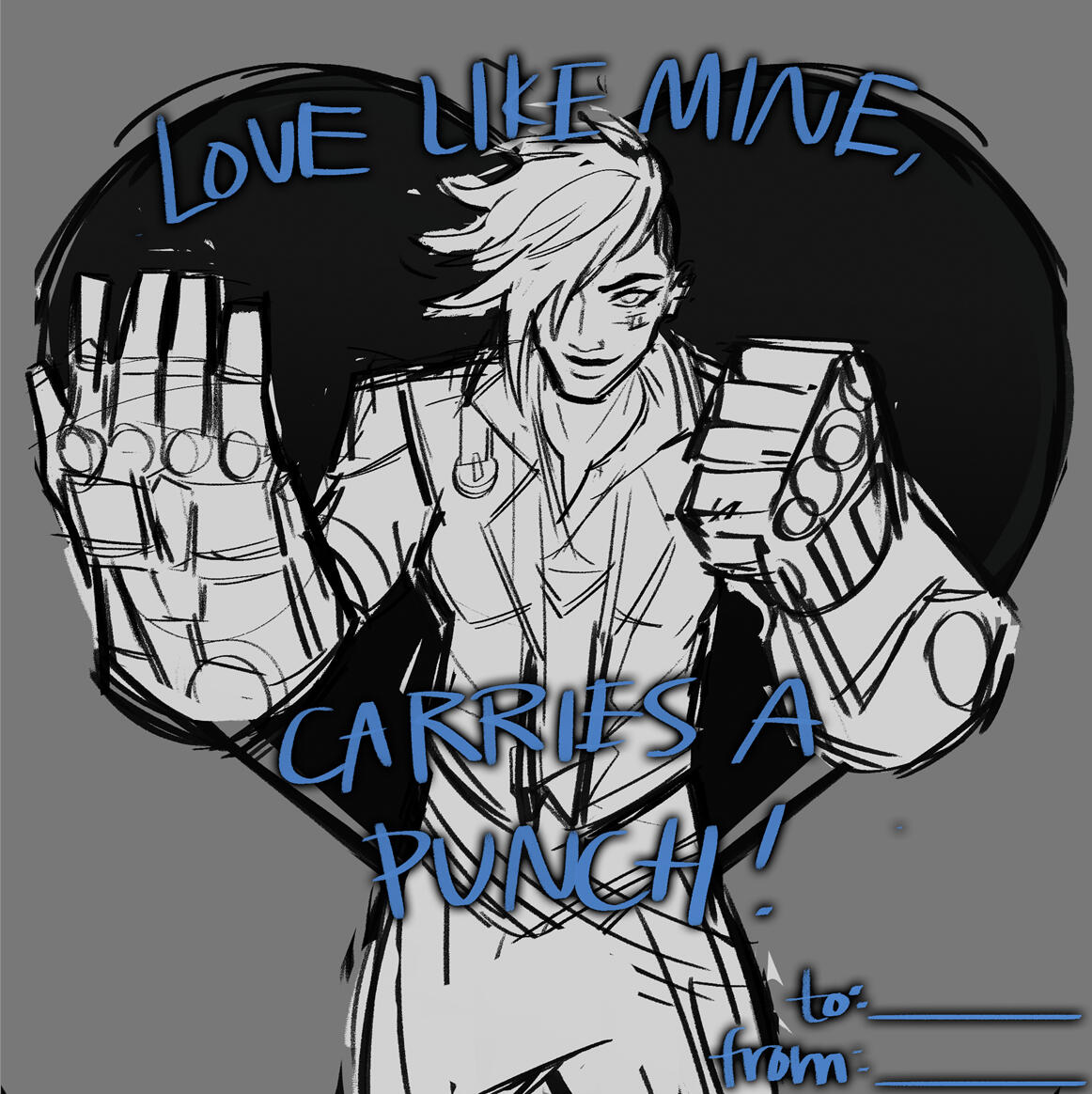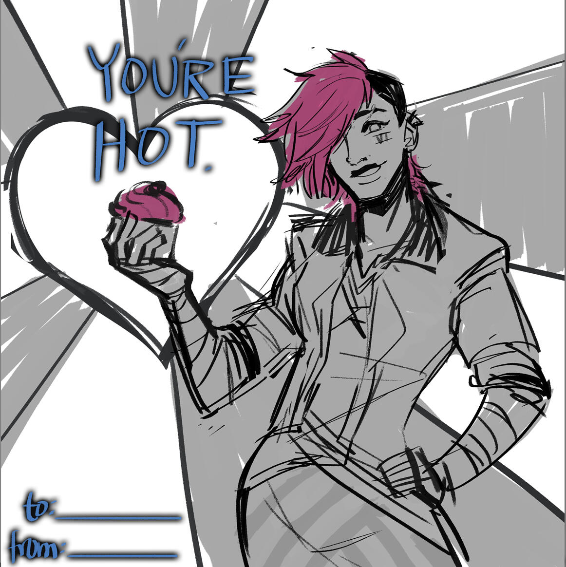 This was done in collaboration with Riot Games.I was tasked with making a Valentines Day card for Vi, specifically her look from their TV Series, Arcane.This was posted to the official League of Legends Twitter, Facebook, and Instagram accounts.